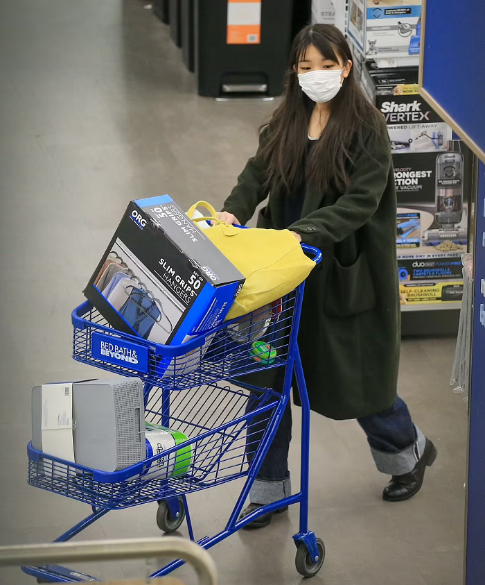 The 30-year-old, who now goes by Mako Komuro, spent about an hour and a half shopping for paper towels, bath towels, organizer baskets, coat hangers, and other essential items.