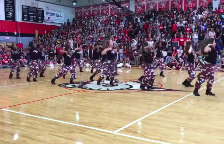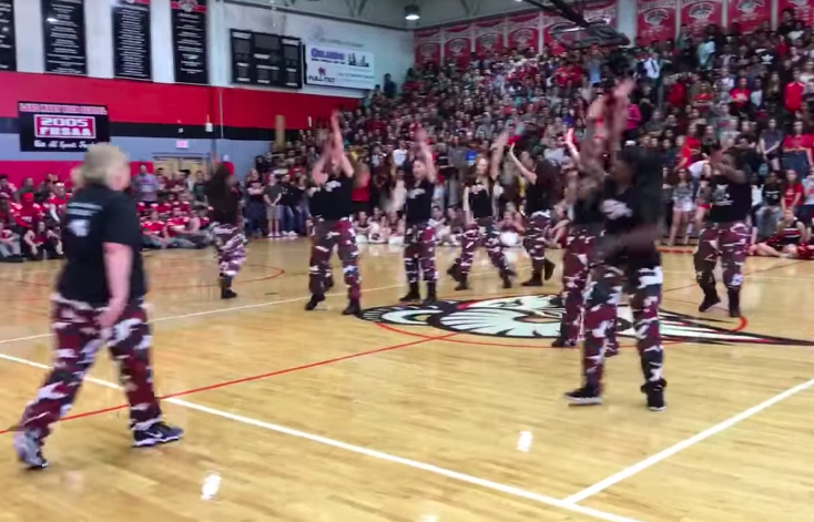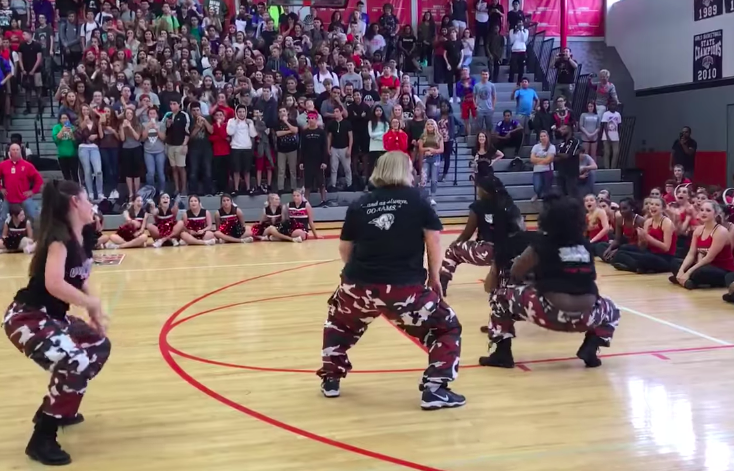 Watch the principal joining the step team at the football pep rally