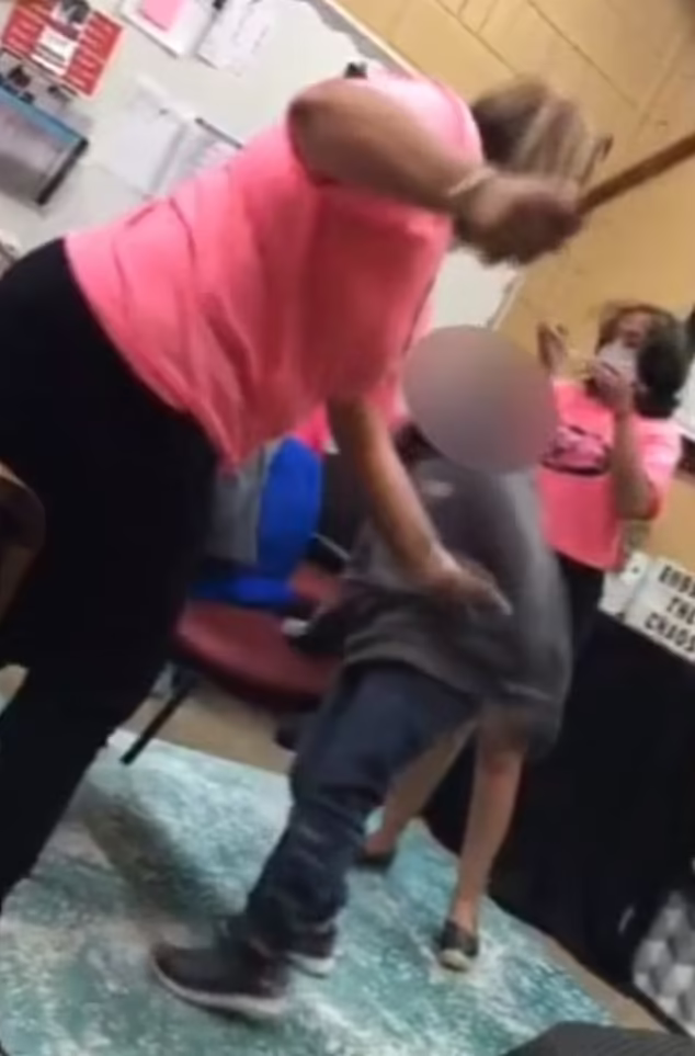 It contains footage of the principal spanking a six-year-old girl in front of her mother, giving her punishment for damaging a school computer.