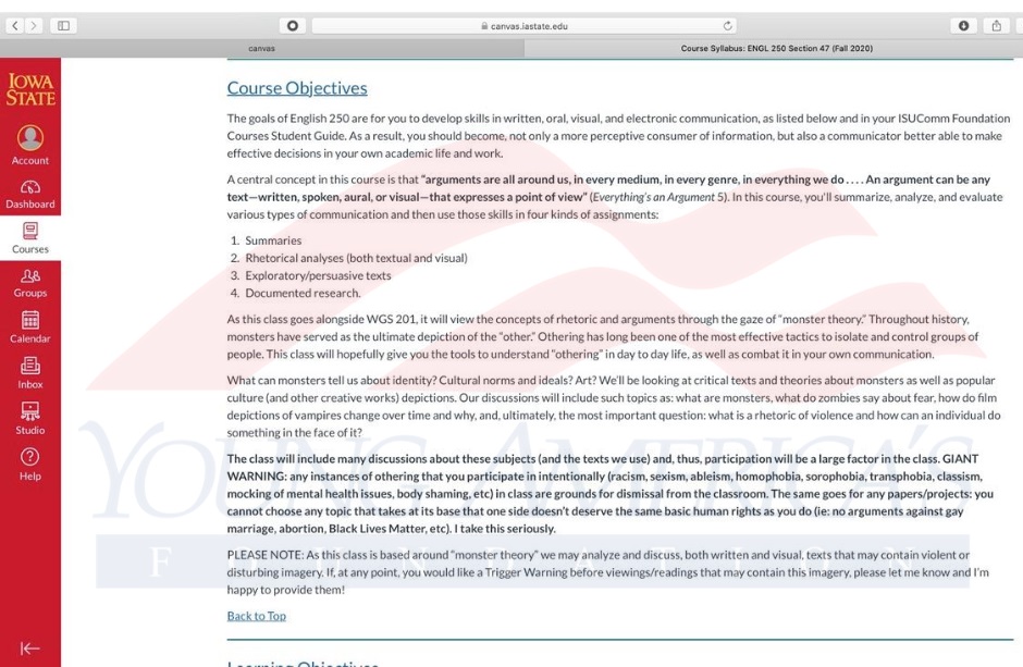 As College Fix reported, Chloe Clark, an English professor at Iowa State University, came up with a controversial syllabus in which she told her students they weren’t allowed to “choose any topic that takes at its base that one side doesn’t deserve the same basic human rights as you do.”