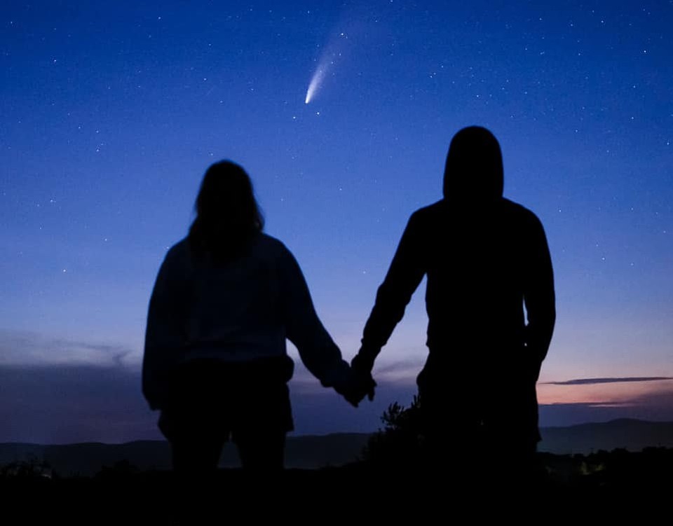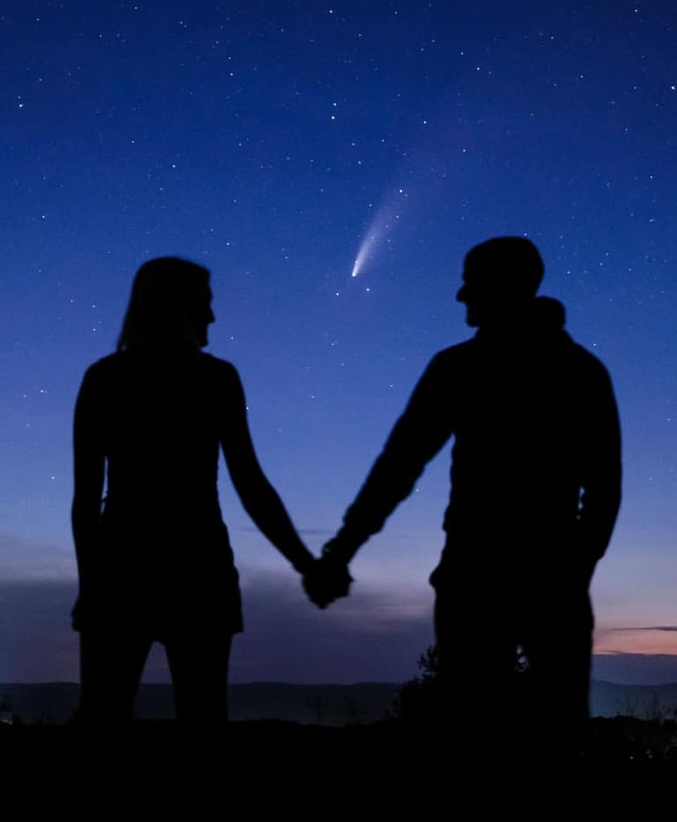 Ahead of the celestial event, which is set to happen once every 6,800 years, the couple took to Old Forge to observe the comet with bare eyes as it passed by our planet.