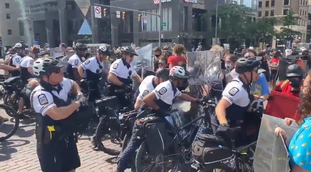 According to the reports, a mass of protesters wielding signs and calling for justice had gathered in the city of Columbus prior to clashing with the police who attempted to push them off the street using their bikes.