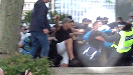But a shocking video from the protest shows a confrontation between police and violent demonstrators in Parliament Square.