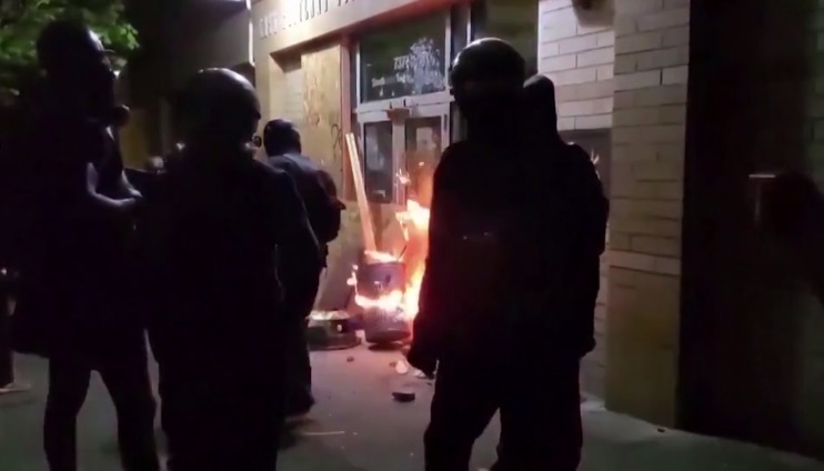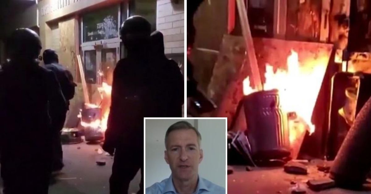 Portland demonstrators have been accused of “attempting to commit murder” by the city’s mayor after setting a police precinct building with officers still inside on fire.