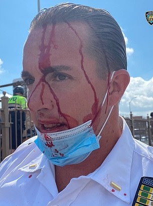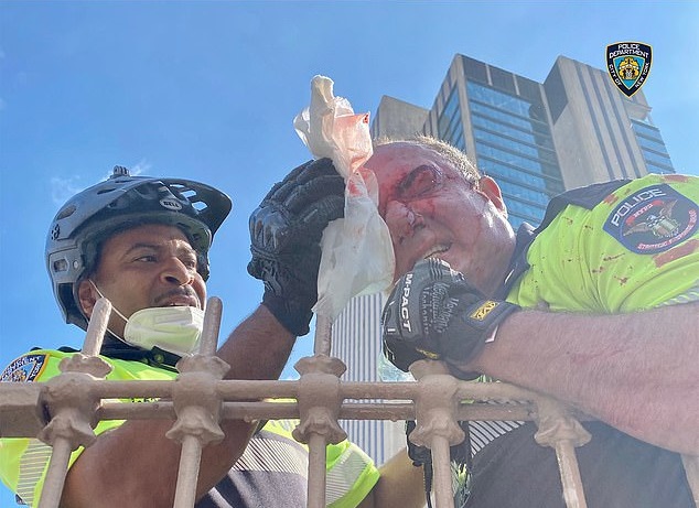 Following the clash, the New York Police Department also shared photos of the injuries that at least four of their officers suffered during the brawl with protesters.