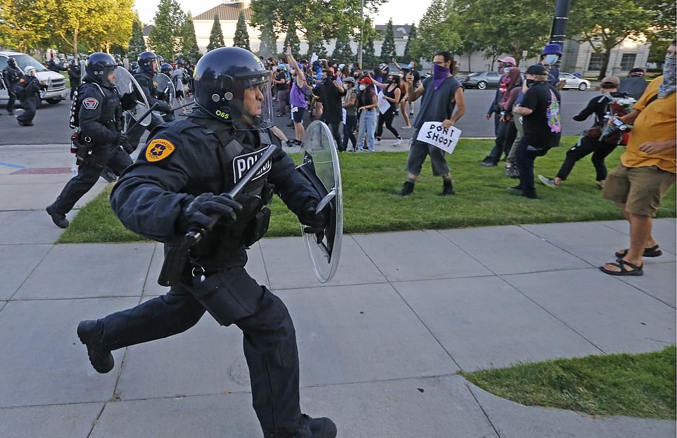 Hundreds of protesters clashed with the local police and covered the DA’s office in red paint resembling blood following the prosecutor’s announcement that the killing of the young man who was shot in the back by police officers was justified.