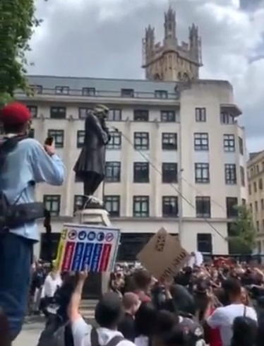 And so, the demonstrators tied ropes around the statue of Colston before pulling the monument down and stomping it.