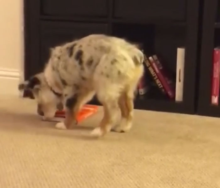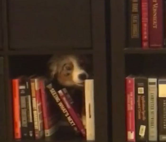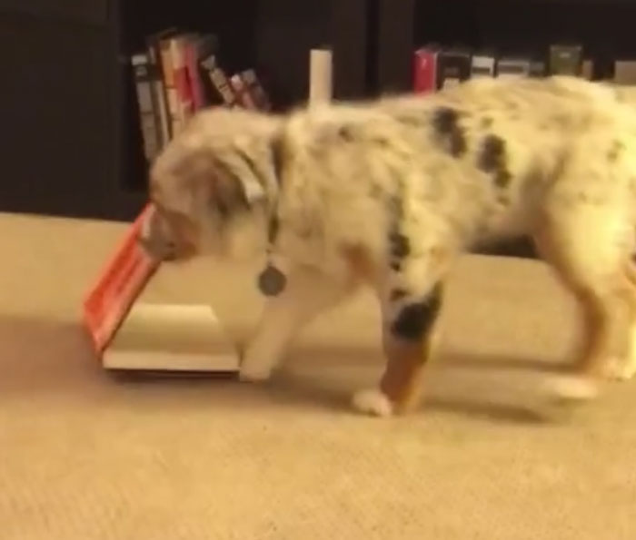A video of an adorable Aussie puppy pulling a book straight off the shelf is winning the internet.