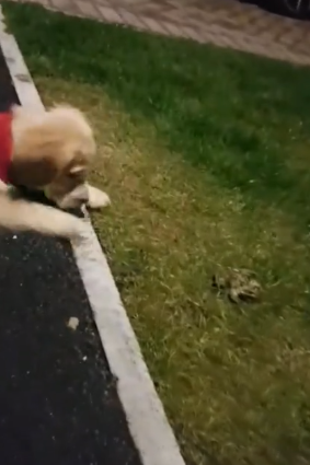 He couldn’t stop himself from having playtime with the little frog. We have all seen pups chasing mouse all around but this one of those times when they were trying to be friendly towards the small creatures like a frog.