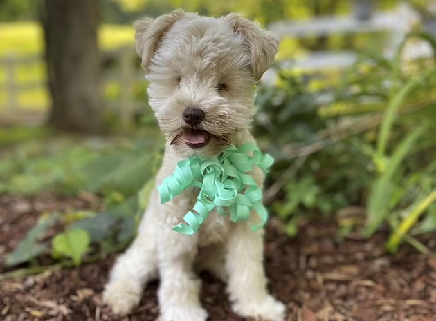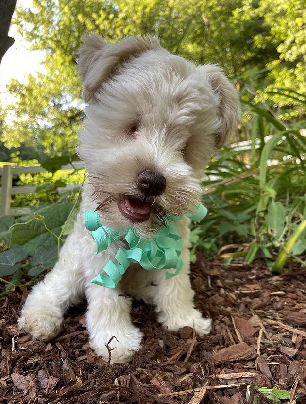 The tiny pup named Teacup is a cross between a wheaten terrier and miniature schnauzer. Aside from being blind, she was also born with her bladder attached to the uterus.