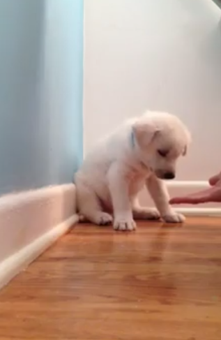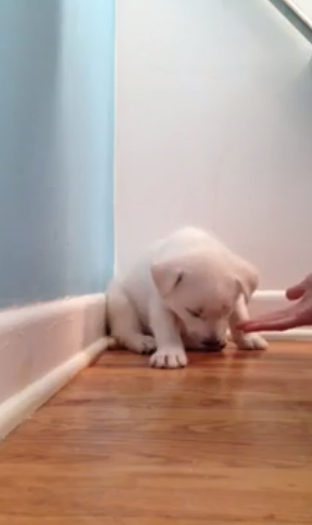 In the video, here is a 2 months old puppy who is being trained by his master but it looks like he has no interest in the training or the treats he may receive because he keeps falling into sleep.