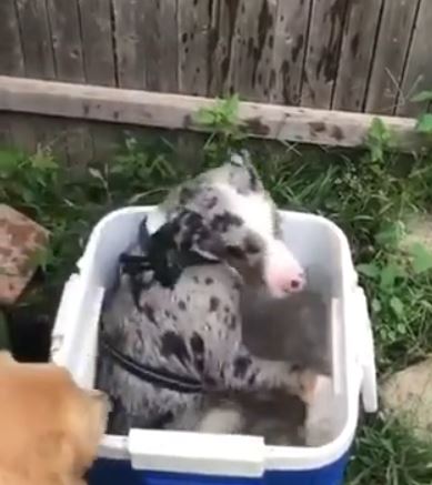 Look at this video and you will know how adorable dogs are and how they will find any way to get some chill, even if it is to take a dive in the cooler.