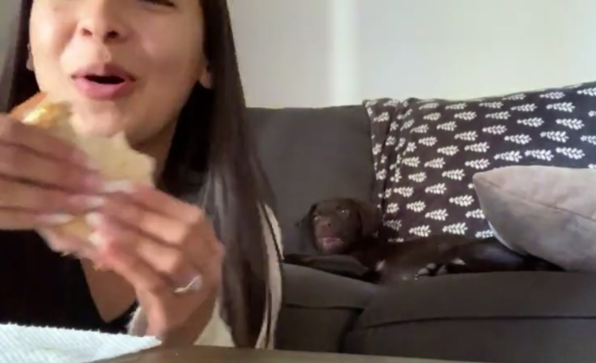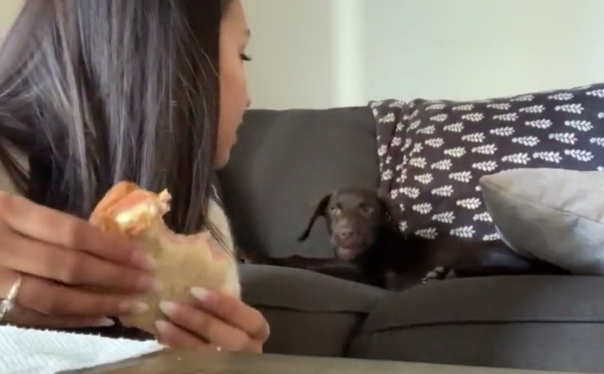 This 4-month-old puppy is fond of human food and clearly showing that he would like some of his owner’s tasty sandwiches. Cuteness overload!