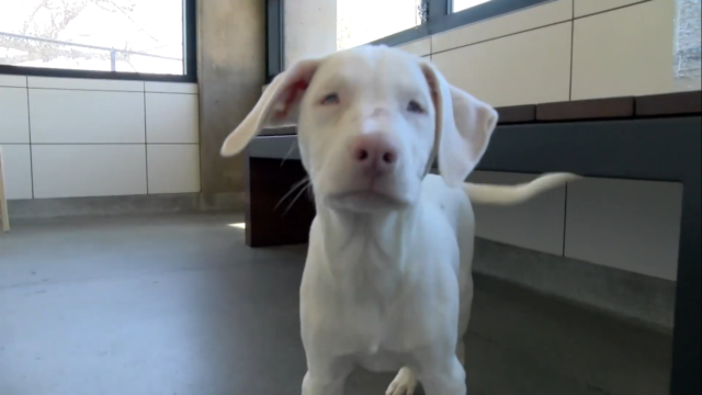 You see, Denver and Star belong to a litter of 8 puppies that were abandoned along with their mama. When the pooches were brought to the Helen Woodward Animal Center, rescuers realized right away that something was wrong with Star.