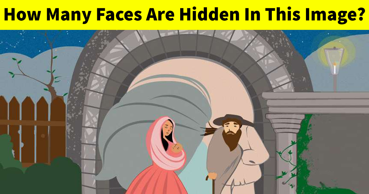 The correct answer is that there are 9 faces hidden in this image. Look at our solution below for a better visual understanding.