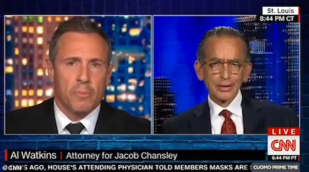 Chansley had come into the Capitol, flying in with his spear and saying obnoxious things, Cuomo assumes, and Watkins replies that it’s a “mischaracterization.” He says that his misdemeanors and actions were caused by Trump.