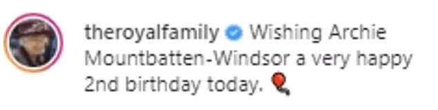 “Wishing Archie a very happy 2nd birthday today,” the Duke and Duchess of Cambridge wrote.