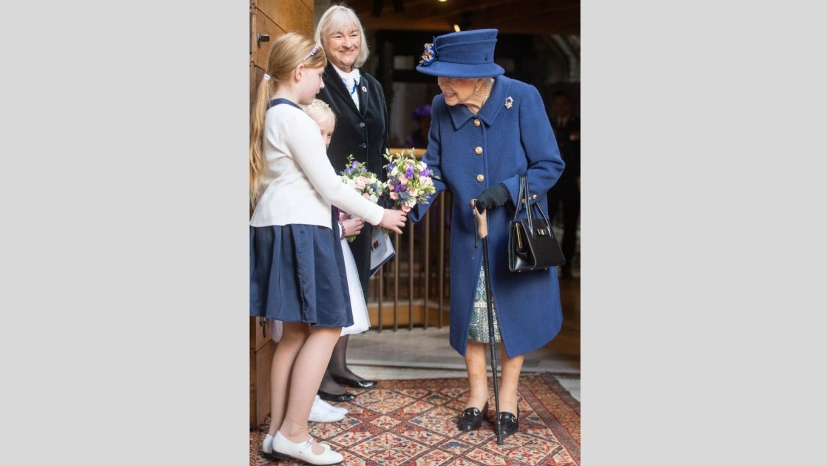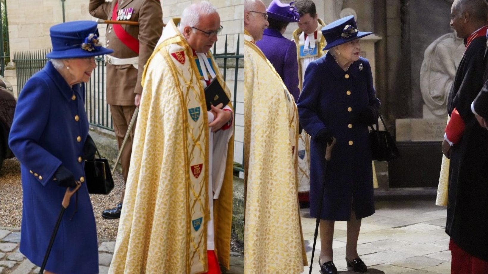 Queen Elizabeth II, appeared at the service that marked the centenary of the Royal British Legion and was handed the stick after stepping from her state limousine.
