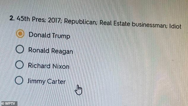 A Florida teacher has been reassigned for giving a class quiz that referred to President Trump as an ‘idiot.