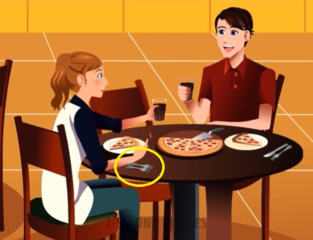 As you can see, this young woman is going to have a little trouble eating her slice of pizza because she’s been given TWO FORKS instead of a fork and a knife! Do you get it now?