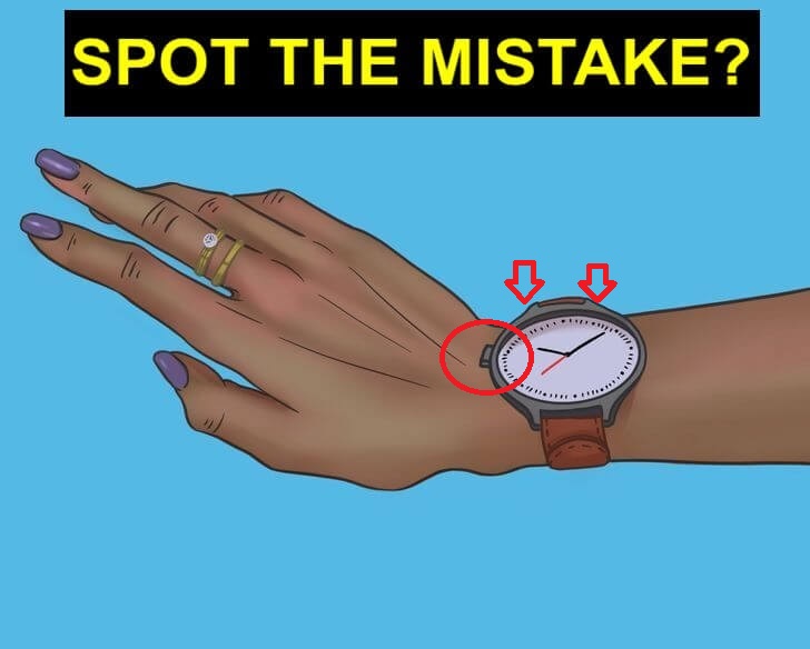 Here is an image of a woman’s hand. As you can see, she adores her arm candy, whether in the form of a watch or some bracelets too. But wait, there’s a mistake in this picture.