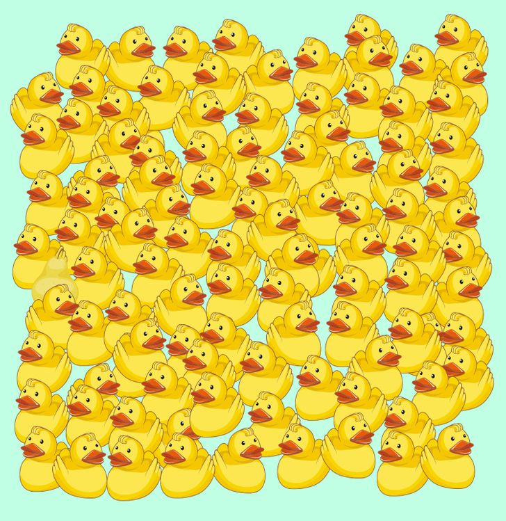 The challenge is to find the pear among the ducks! Have you spotted it yet?