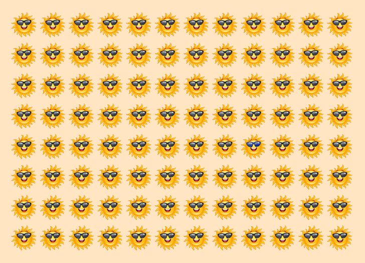 The summer-themed brainteaser shows suns with sunglasses but one of them is actually different! Do you have what it takes to find it?