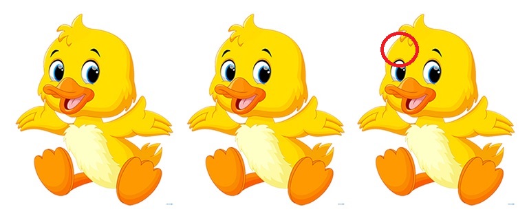Duckling number three has only ONE eyebrow and that’s definitely a difference worth noticing. Do you see it now?