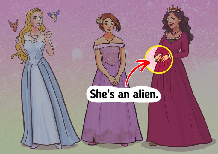 As for the lady in a red dress, she has a complete set of jewelry and appears to be straight out of a Disney movie. But could she be the impostor?
