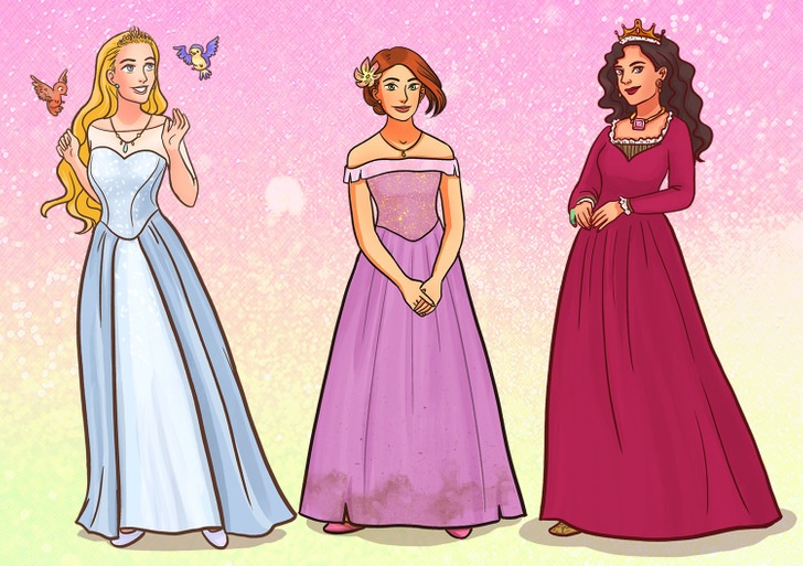 In the first puzzle, you can see three well-dressed ladies. They all claim to be real princesses, but only two of them are what they say. Can you figure out which one is lying?