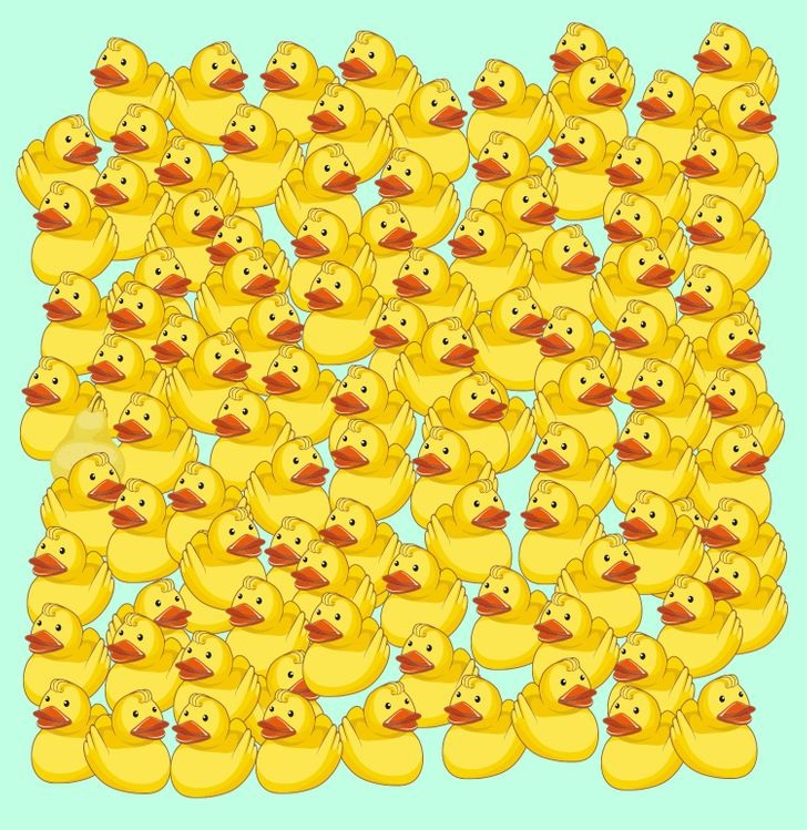 Yes, you heard that right. Amongst the little rubber ducklings, you’ll find a luscious pear hidden in there somewhere. Do you think you can figure out where that piece of fruit stands?