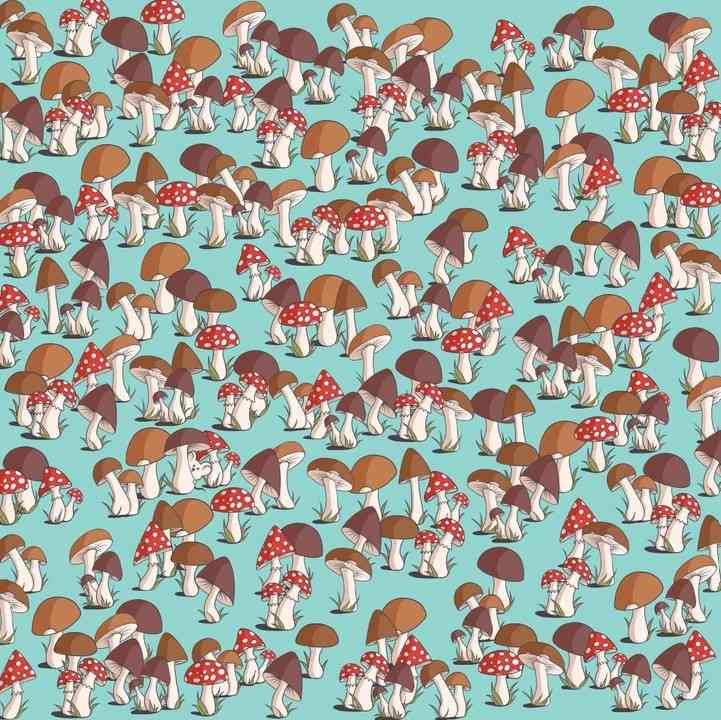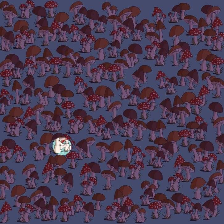 The clever image in question shows dozens of mushrooms that come in different colors and sizes. Somewhere among these fungi, there is also an adorable little mouse that is staring straight at you.