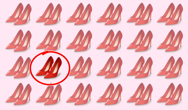 From the long stack of heels arranged in the image above, can you figure out which pair of shoes don’t belong here?