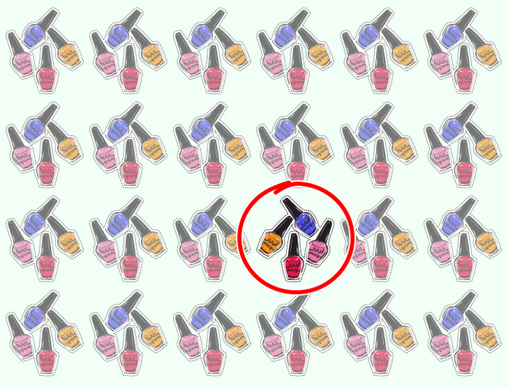 The picture shows sets of colorful nail polish but one of them is actually different from the rest! Have you spotted it yet?