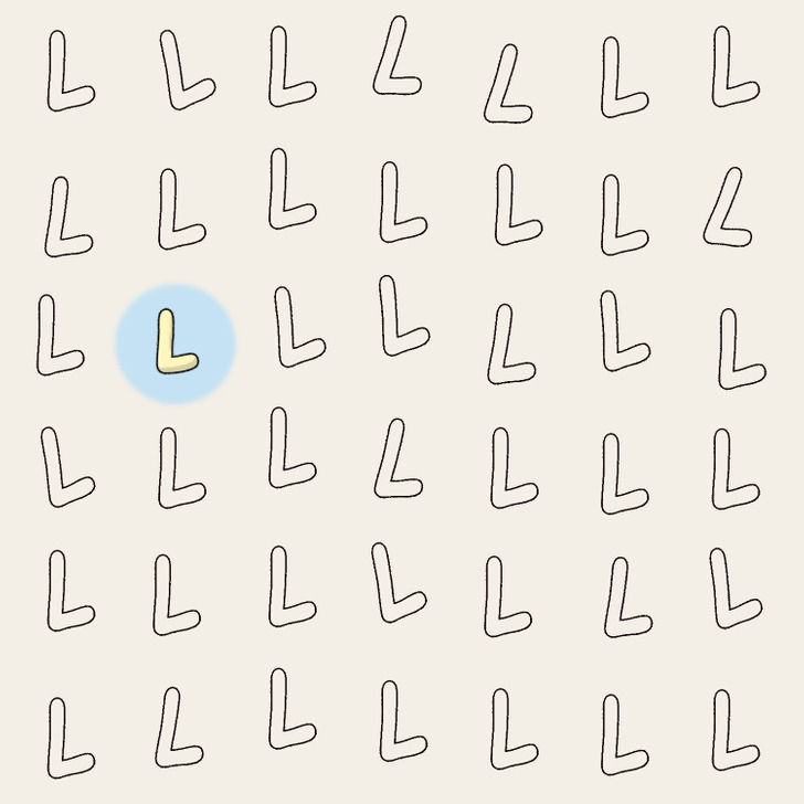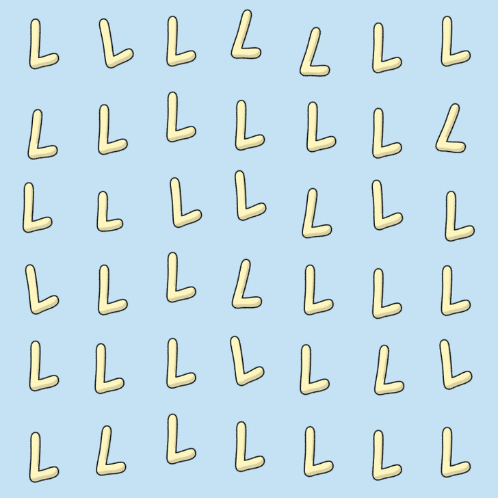 The picture shows Ls. Some of them are upright while others are slanted. They are all identical except for one!