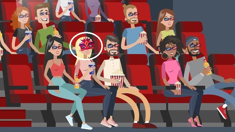 In the picture below, you will see a bunch of people enjoying a movie at a cinema. Somewhere in there, a big error is also waiting to be found. But can you beat the odds and find it in just 10 seconds?