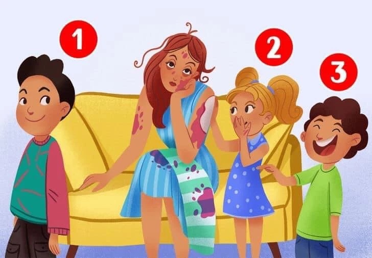 Here’s a puzzle who is tired of her naughty children. One of the kids has made a huge mess.