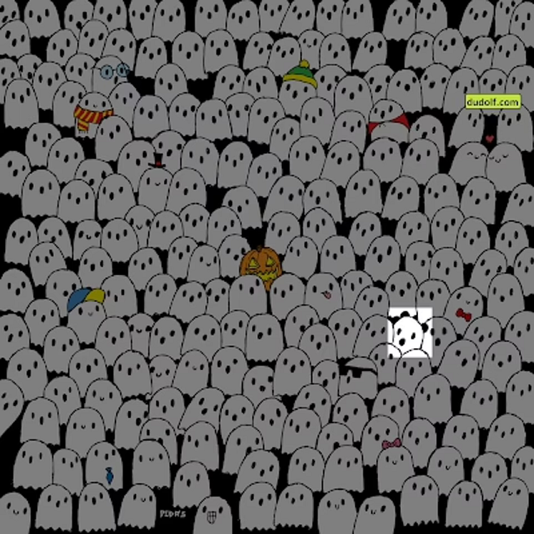 There is a panda among a sea of spooky ghosts! Can you find it?