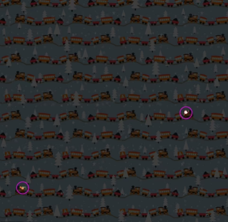 According to the creator, it takes 27 seconds to find Santa and his elf in the wintery scene! But can you spot them faster?