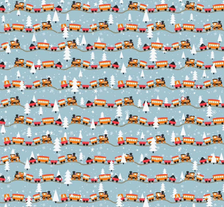 The Christmas-themed graphic, created by train operator Grand Central, shows white Christmas trees and colorful trains.
