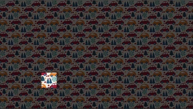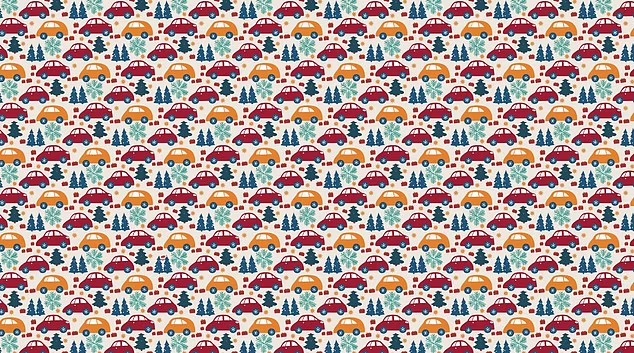 The challenge in question features dozens of red and orange cars scattered among dark green pine trees and teal snowflakes. If you look very closely, you might also spot a number of red boxes and orange dots.