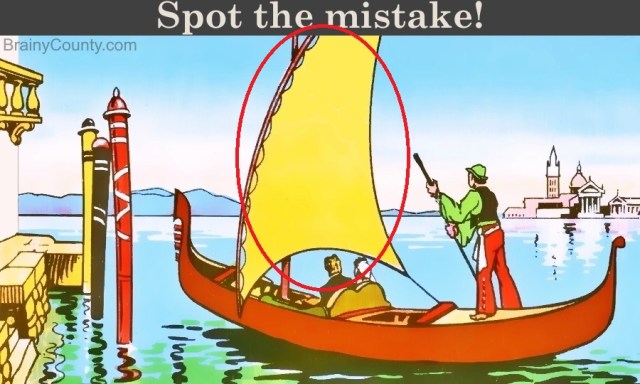 A gondola is a boat WITHOUT a sail but this one has one which shouldn’t be there! Do you see it now?