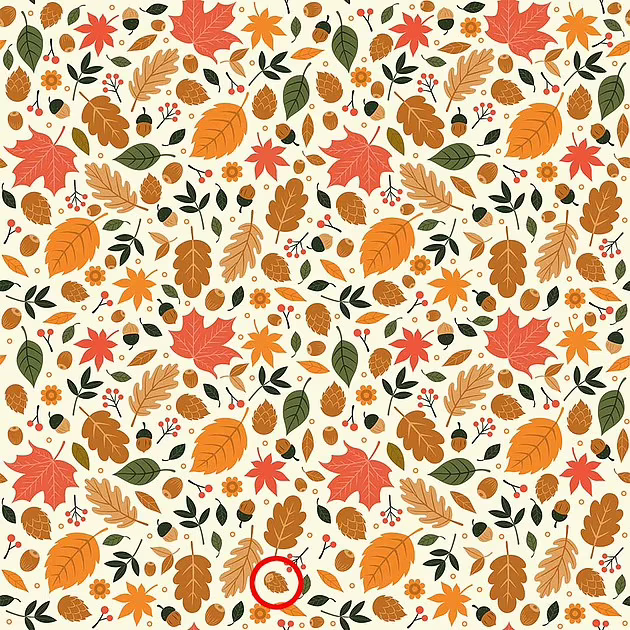 The picture shows different autumn leaves but there is also a hedgehog that looks like the items around him!