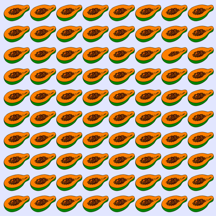 Let’s start! Take a look at the picture below and see if you can find the papaya slice that looks different from the rest!