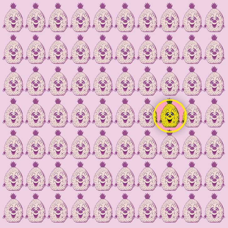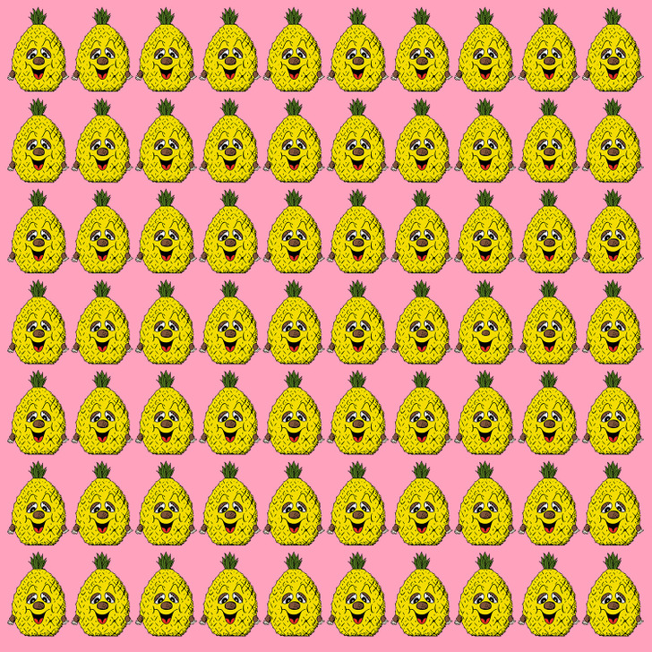 The picture shows adorable pineapples and even though they all look the same, one of them actually looks different! Have you spotted it out yet?