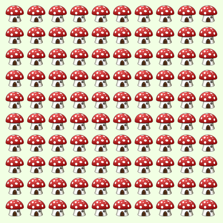 One of these mushroom houses is different from the rest. How fast can you spot it?