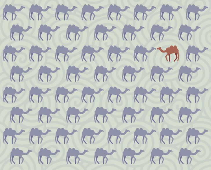 This picture puzzle shows camels walking in one direction. But one naughty camel doesn’t want to follow others!