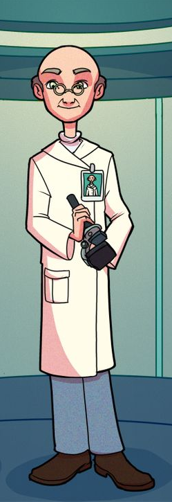 The second person is a male researcher wearing a white lab coat. He is wearing eyeglasses while carrying a microscope.