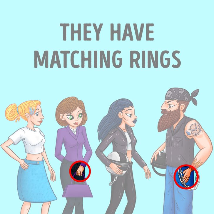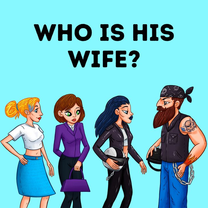 Taking a closer look at this image, can you figure out who the wife among the three different women is?
