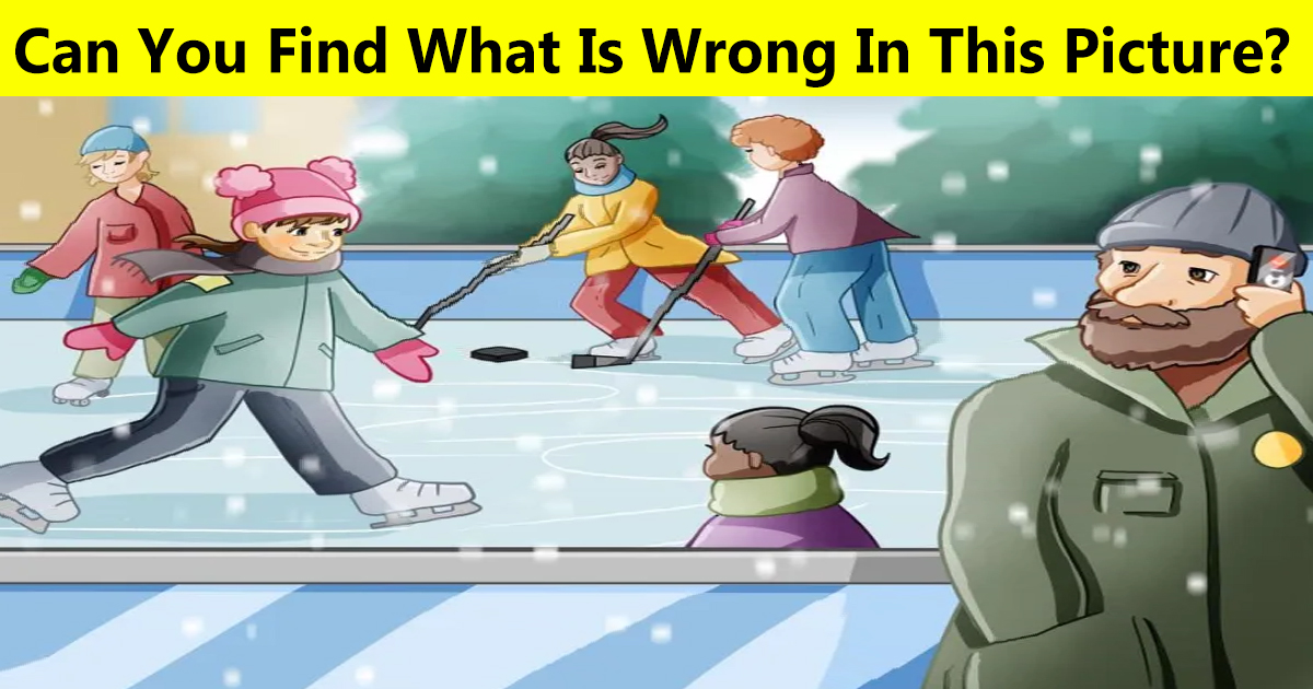 Here is an image featuring a dreamy setting, straight out of an ice skating rink. All the kids seem to be having fun but in reality, there’s a major mistake in this picture.